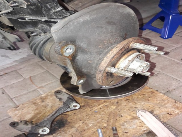 2. nicht so wäre ein beherzter Schlag auf den betreffen Bolzen mittels 250 Gramm Hammer unter Gegenhaltung bzw. hinterlegen z. Bsp. Stück Holz zum Schutz des Radlagers