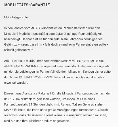 Ich füge mal eben die Maps Garantie von Mitsubishi als 4 Sreenshots bei.... da wird mir wesentlich mehr geboten als beim ADAC