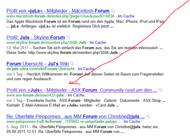Nebenbei bemerkt: Dein Pseudo einmal Googlen und man kann so einiges in Google lesen - siehe sreenshot-