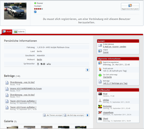 Ich habe Dich auch nie gebeten, Dein Profil komplett auszufüllen, und wenn ich im Forum etwas anfrage, sind es maximal ein paar Daten über das Fahrzeug einzugeben und vielleicht noch die Gegend aus der jemand kommt.